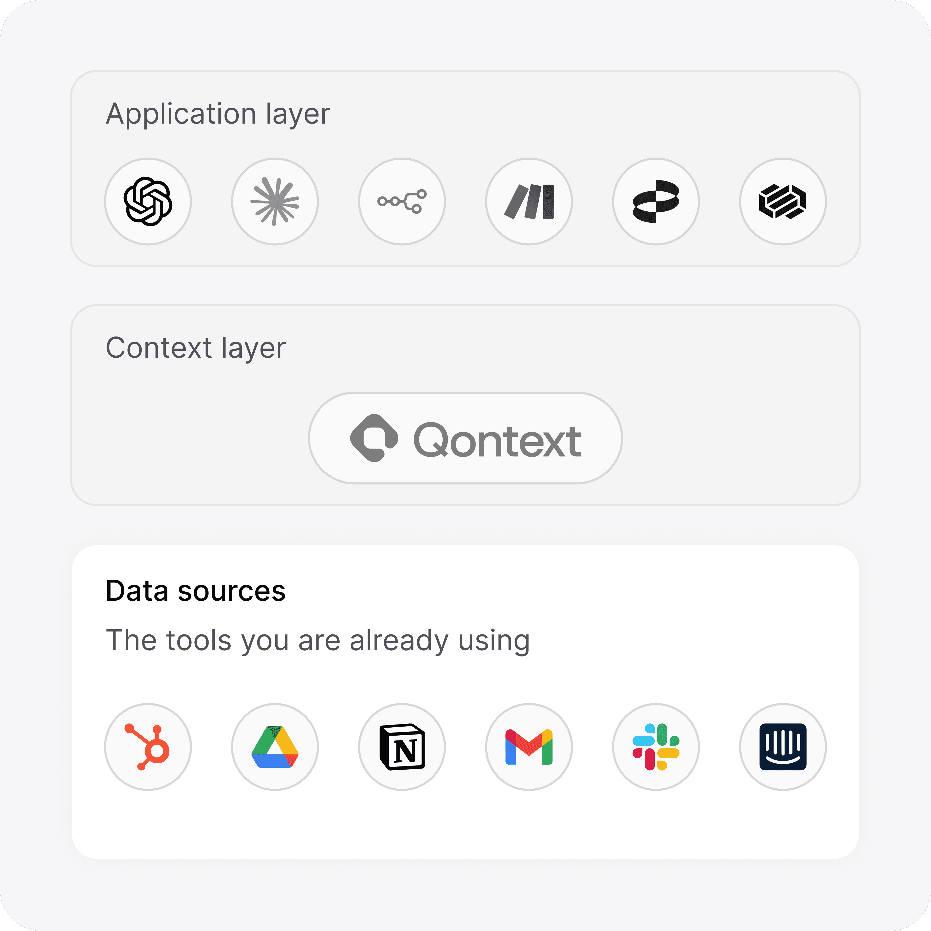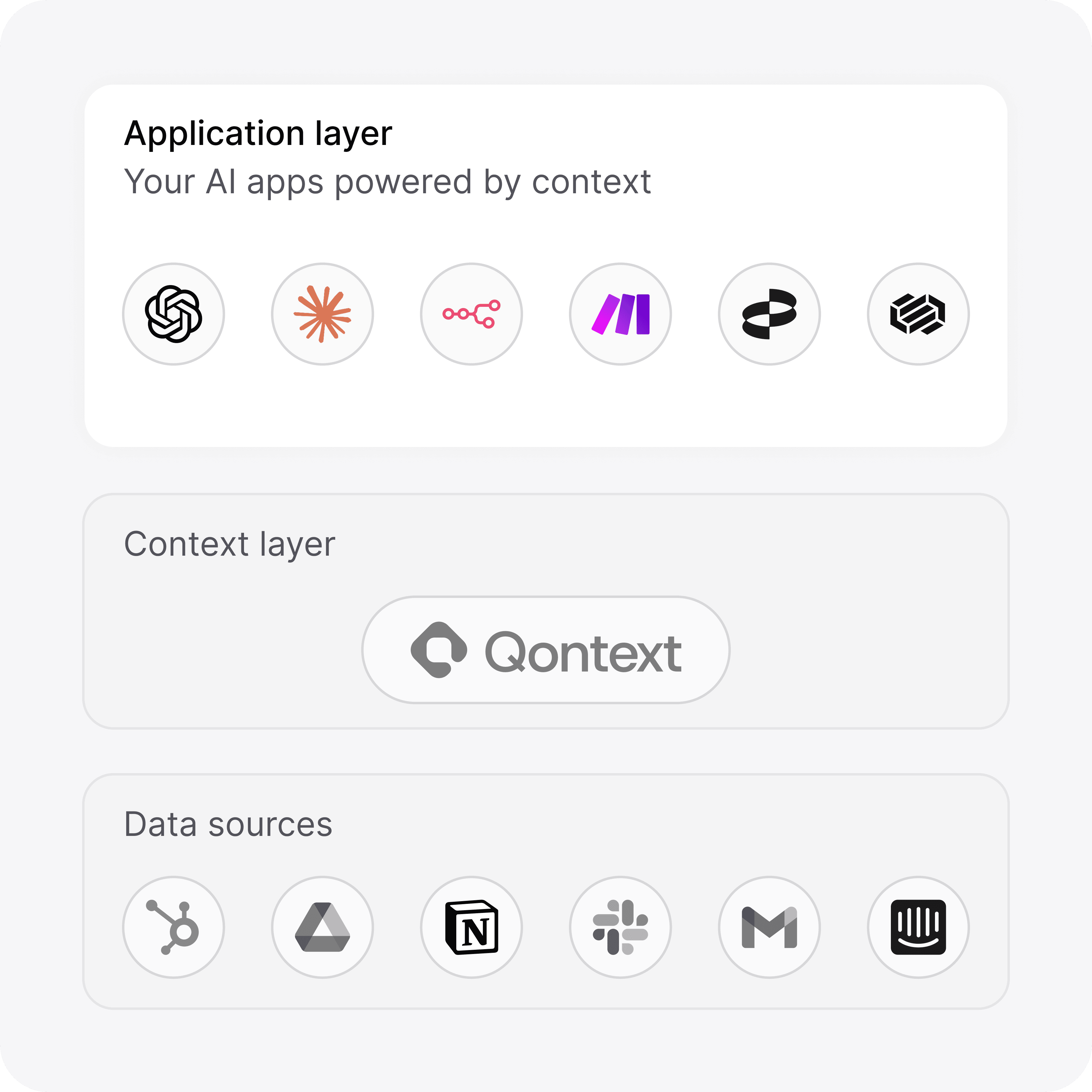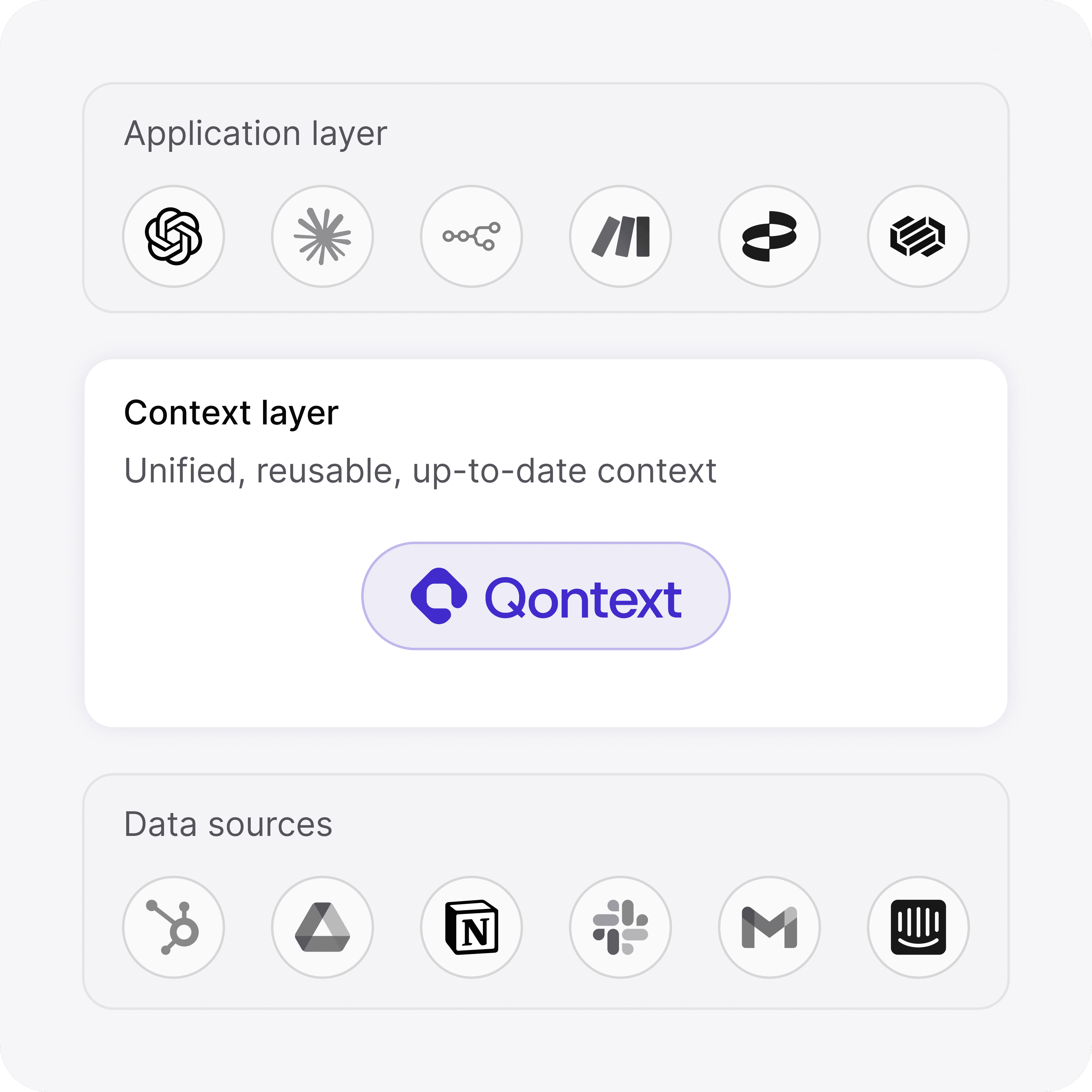 Qontext injects the right company context into AI processes in every department – Sales, Marketing, Customer Service, or Ops.